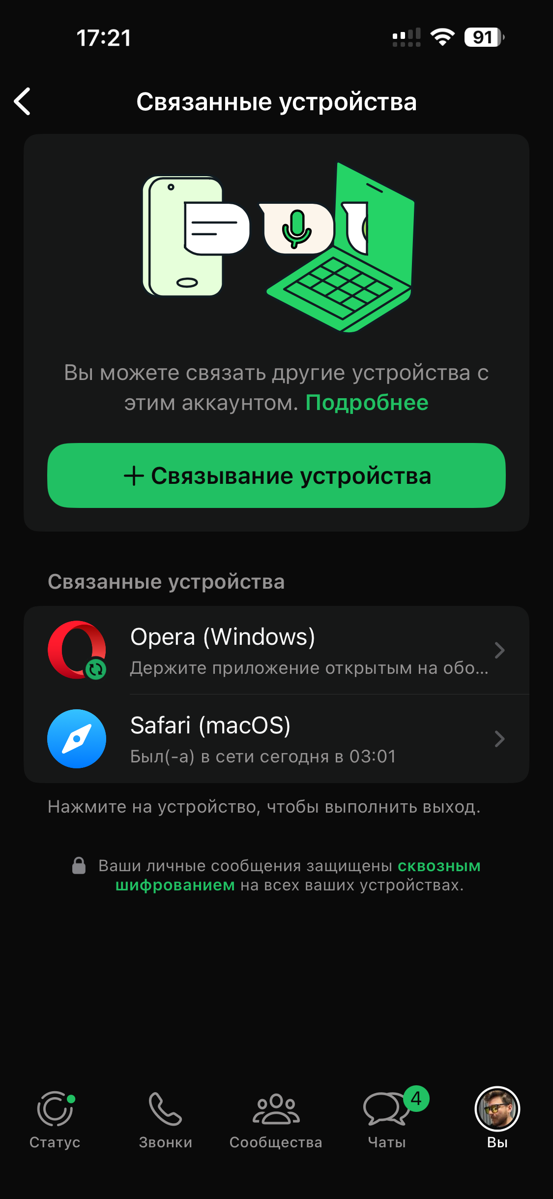 - Перейдите в Настройки → Связанные устройства
