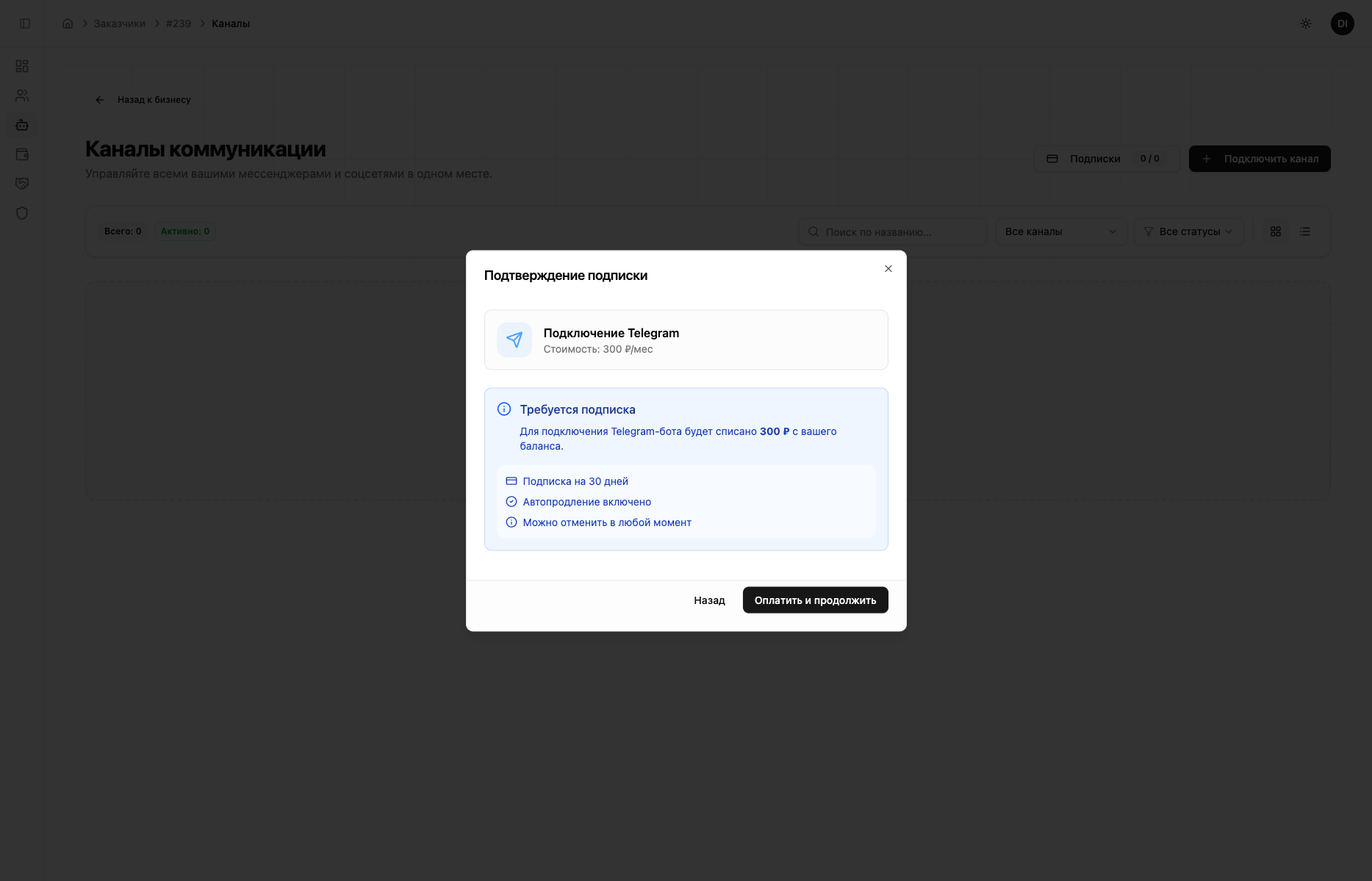 Оформите подписку на канал (списывается с баланса).