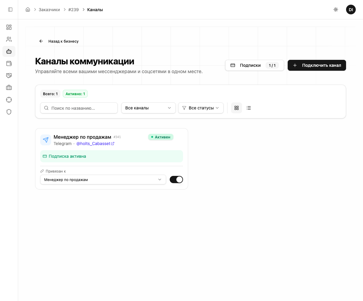 Да. Один ИИ-сотрудник может отвечать в Telegram, WhatsApp, Instagram и других каналах одновременно. Все диалоги попадают в единую CRM.