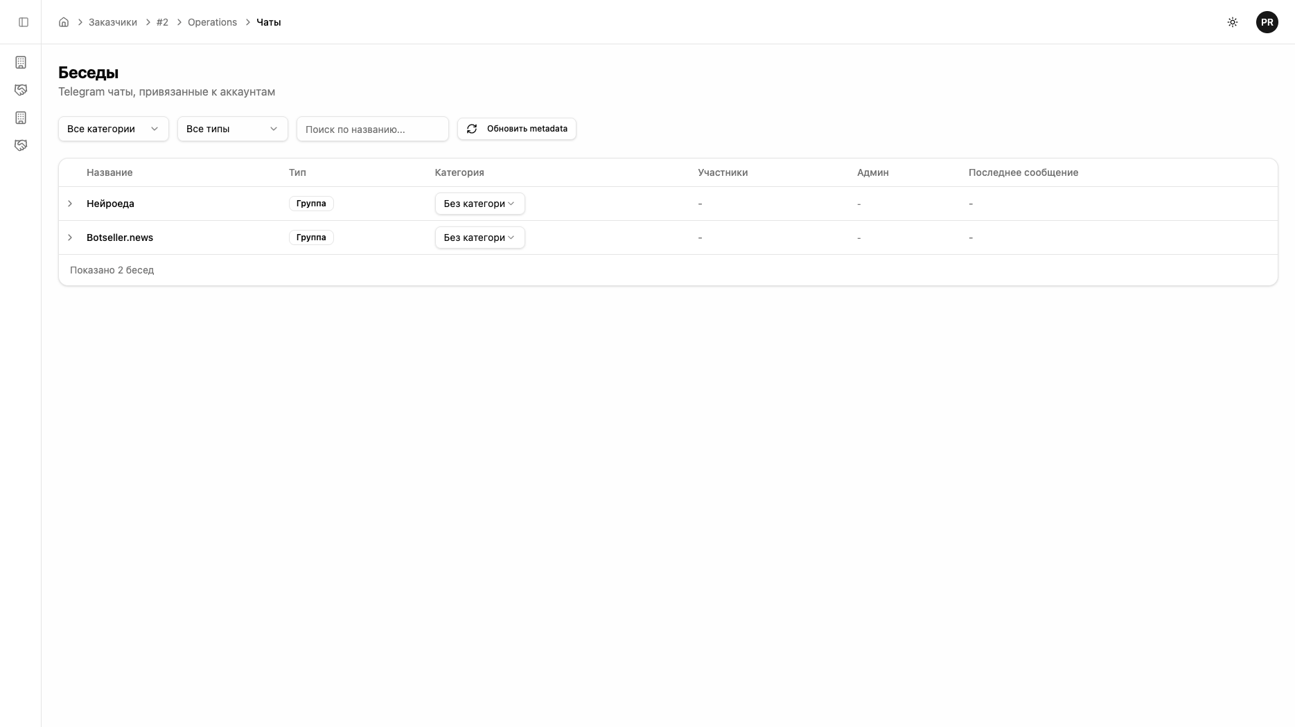 - Категория — client, internal, project, supplier, channel (или без категории)